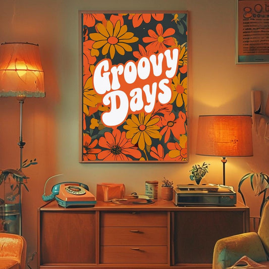 Groovy Days Retro Floral Poster | 70s Boho Wall Art | Psychedelic Wall Art