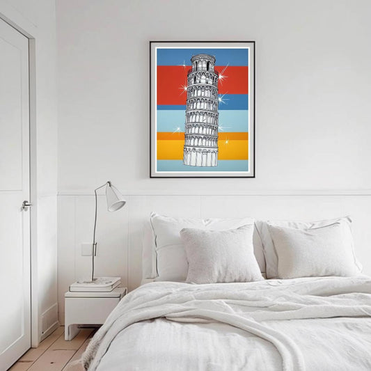 Vibrant Leaning Tower of Pisa Art | Retro Italy Travel Poster | Italian Landmark Print