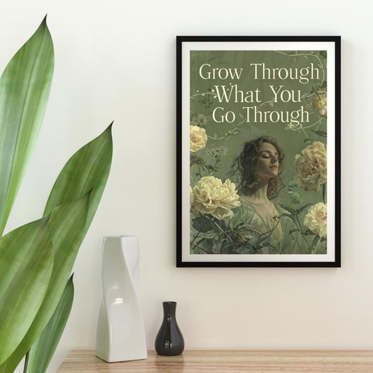 Inspirational Wall Art | Floral Motivational Print | Positive Message Decor | Printable Quote ArtGrow Through What You Go Through Poster