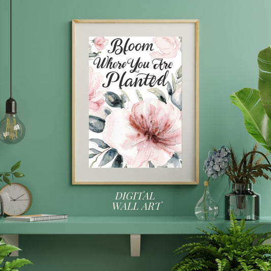 Watercolor Floral Art | Botanical Inspirational Print | Bloom Where You Are Planted Poster
