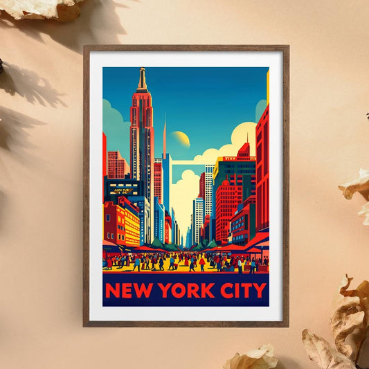 Retro New York City Poster | Vibrant NYC Skyline | Urban Travel Art Print | Digital Download