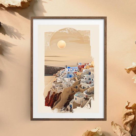 Santorini Sunset Art Print | Mediterranean Coastal Decor | Serene Greece Poster