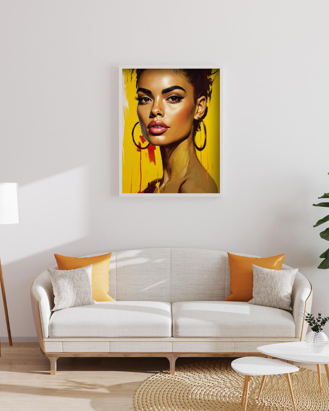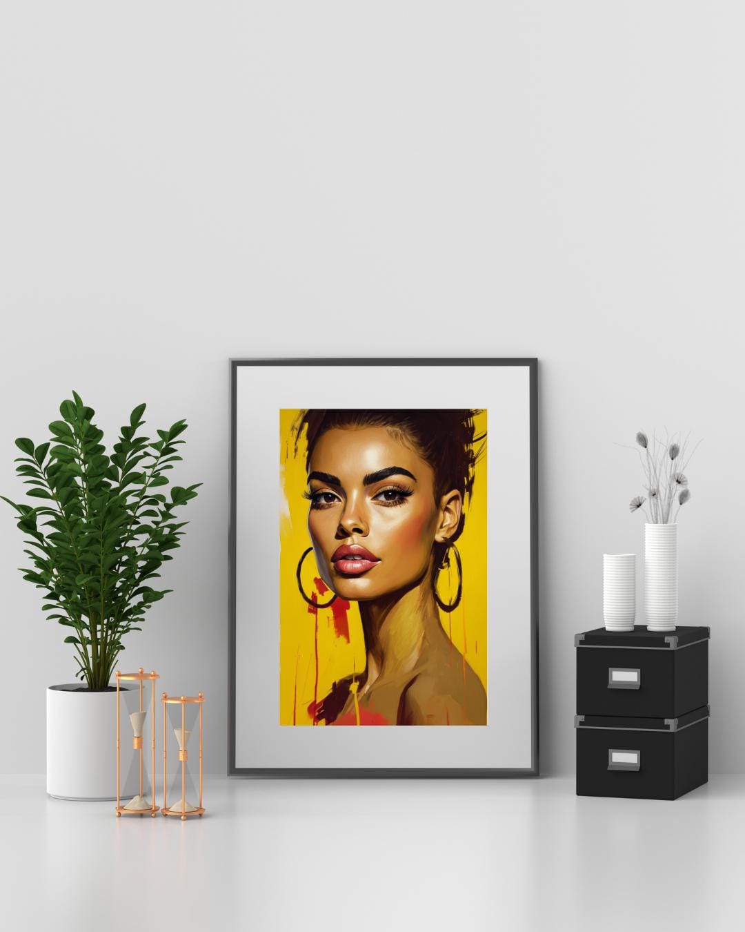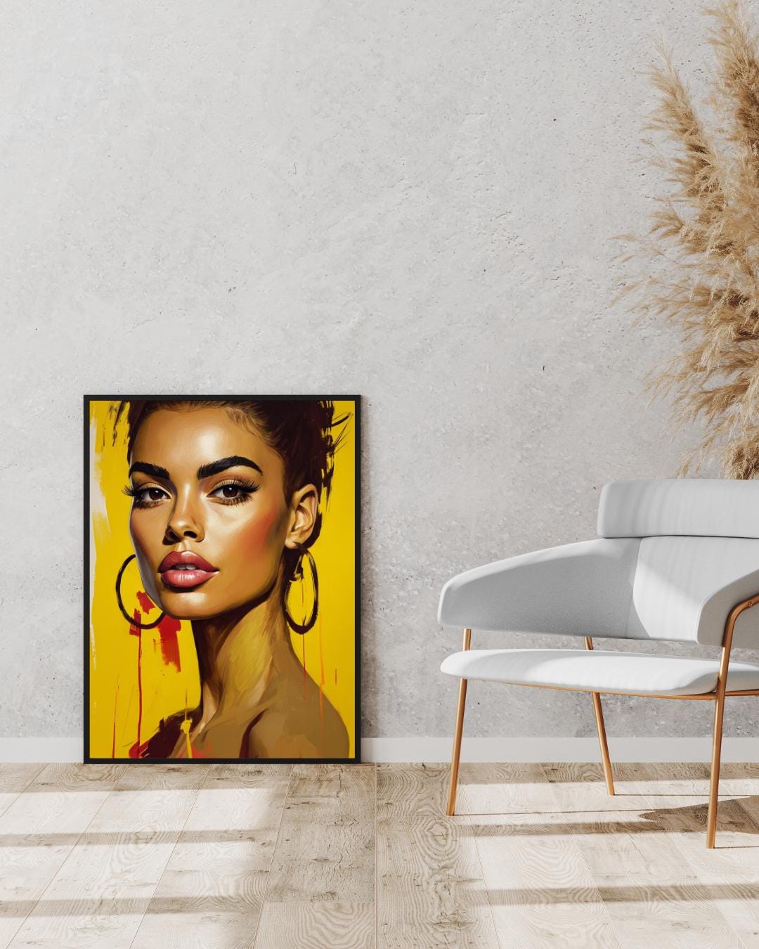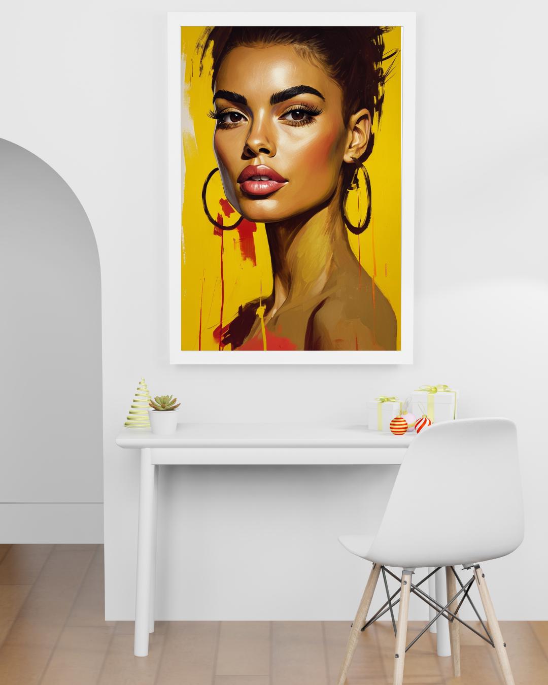 Make a statement with this bold, vibrant portrait of a confident woman, perfect for adding a touch of modern style and elegance to your decor. With expressive brushstrokes and striking colors, this digital fashion illustration brings an artistic flair to any room. Ideal for those who love high fashion and glamour-inspired decor.