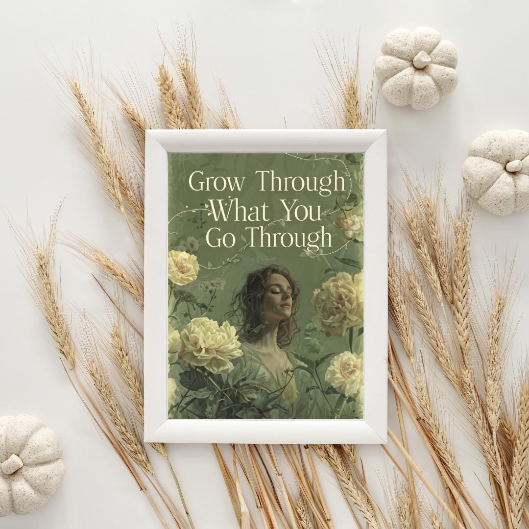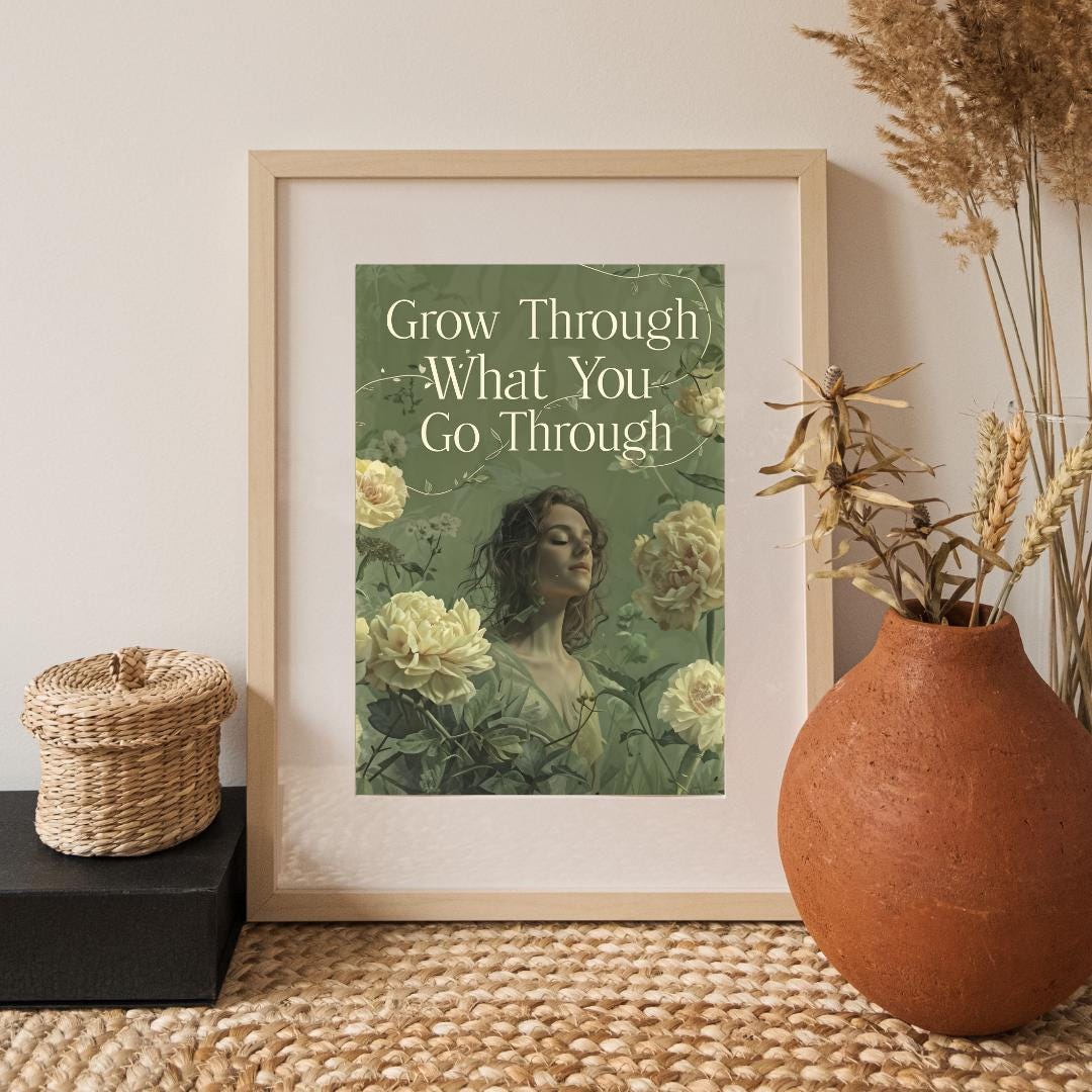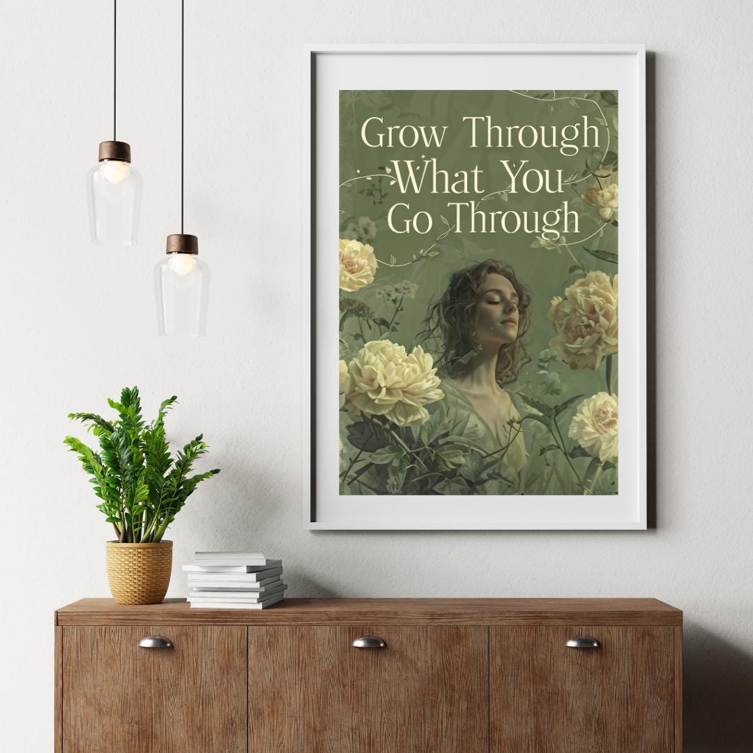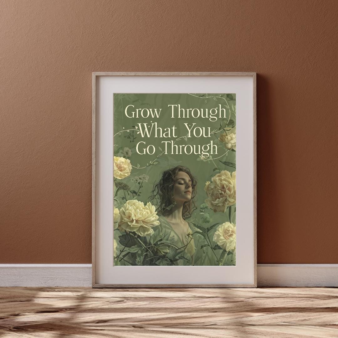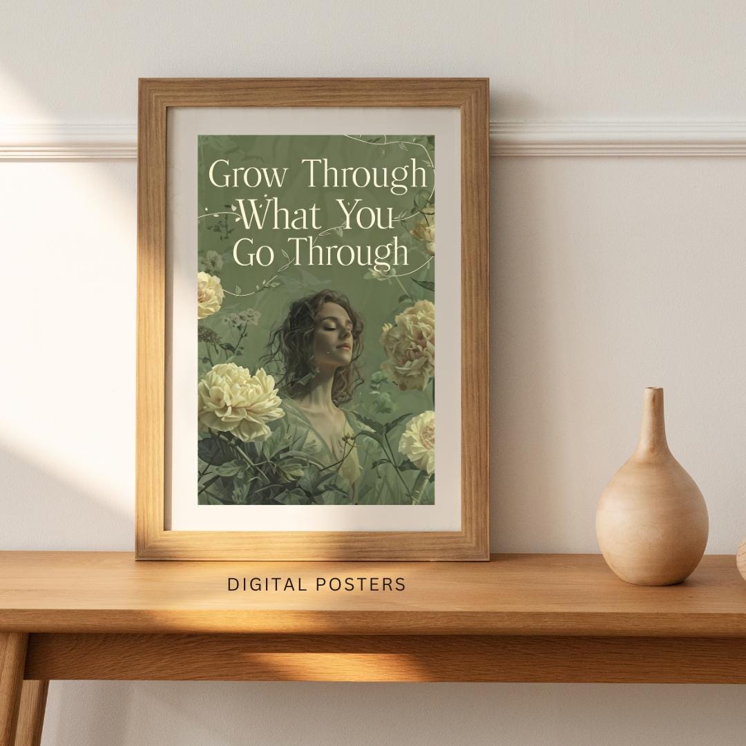 🌸✨ Find strength in your journey with this "Grow Through What You Go Through" poster. Featuring a serene, floral design with a powerful message, this artwork brings positivity and calmness to any space. The soft colors and detailed florals create a soothing atmosphere, making it perfect for bedrooms, living rooms, or meditation areas. Whether for yourself or as a thoughtful gift, this motivational print reminds you to embrace growth during challenging times. Download, print, and enjoy your new inspirational wall art instantly! 💪🌿