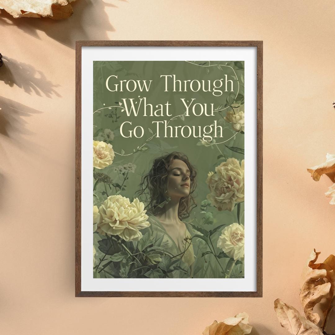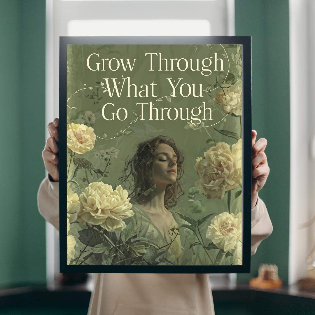 Grow Through What You Go Through Poster | Inspirational Wall Art | Floral Motivational Print | Positive Message Decor | Printable Quote Art