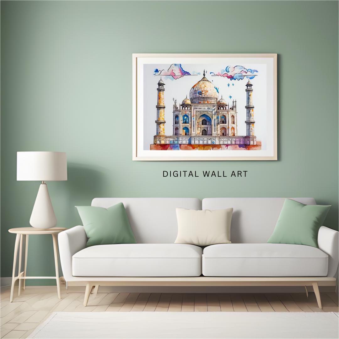 Majestic Taj Mahal Watercolor Print | India Landmark Art | Architectural Decor | Digital Download