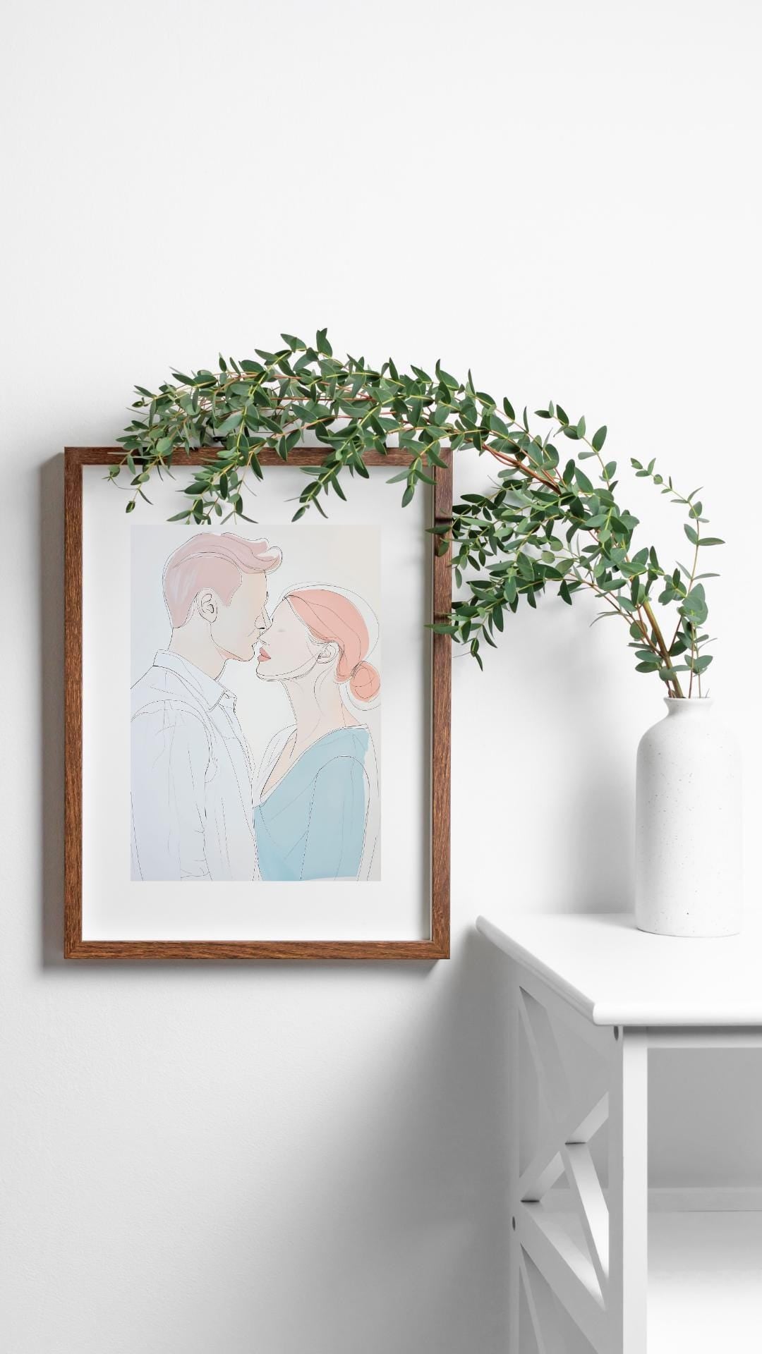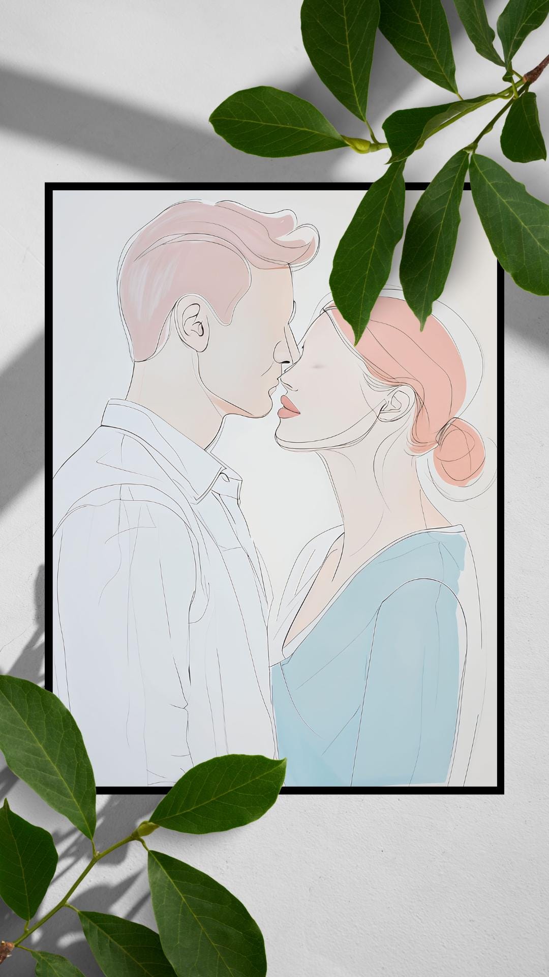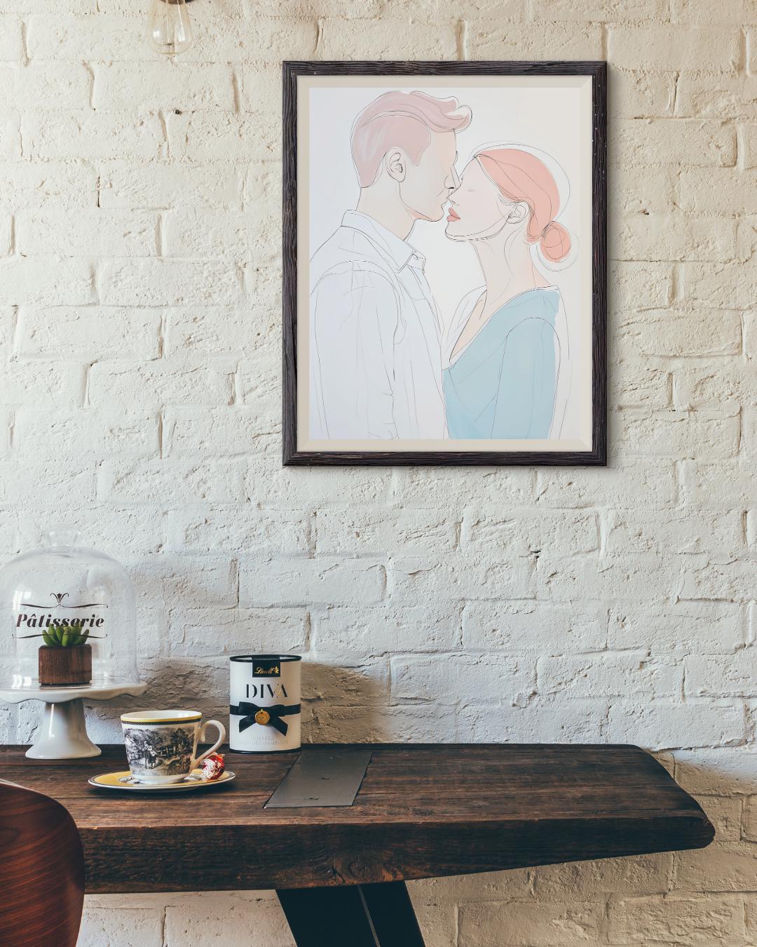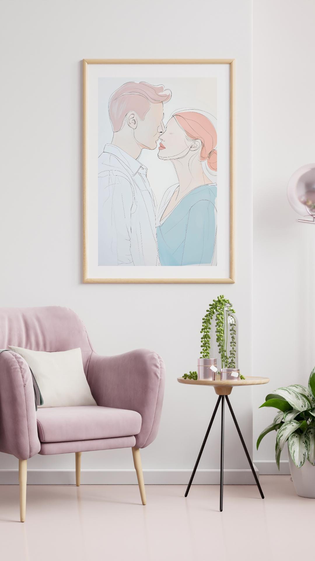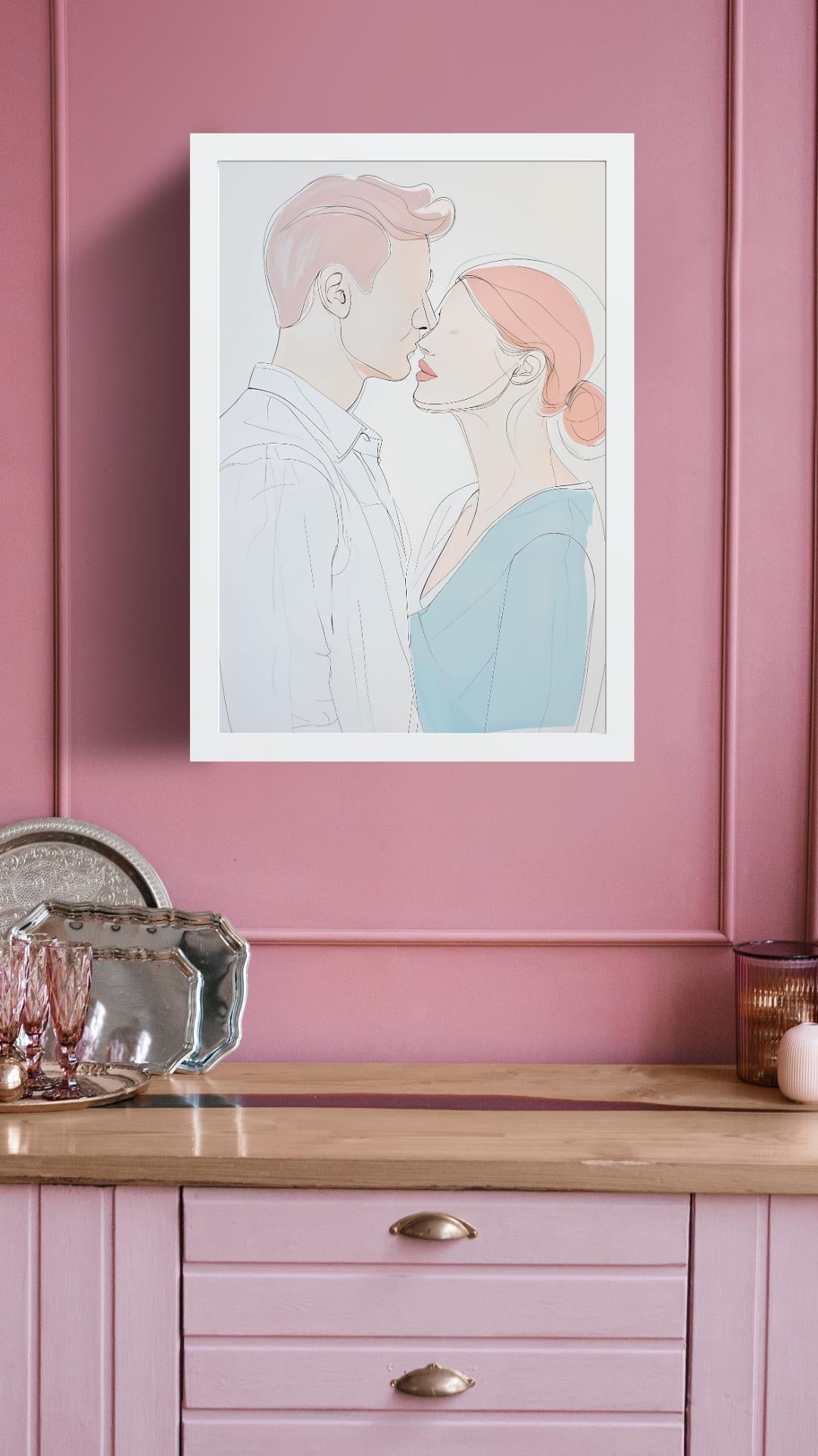 Add a touch of romance and modern elegance to your space with this minimalist couple art print. This faceless portrait captures a tender moment between two figures, beautifully illustrated in soft pastel tones. Perfect for creating a serene and intimate atmosphere, this print is ideal for bedroom or living room decor and makes a thoughtful gift for anniversaries, weddings, or Valentine’s Day.
