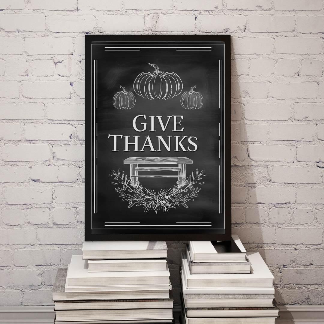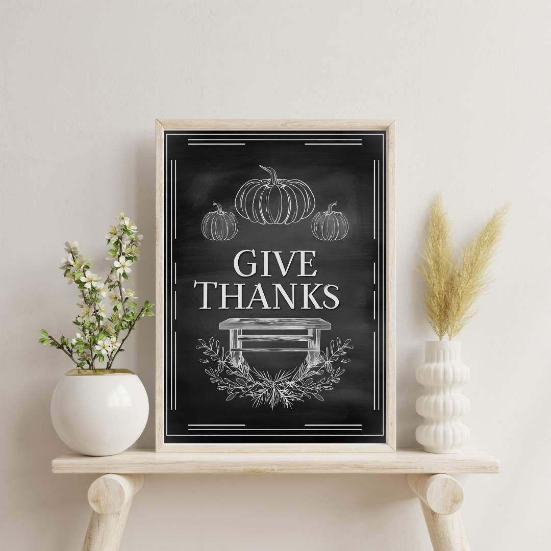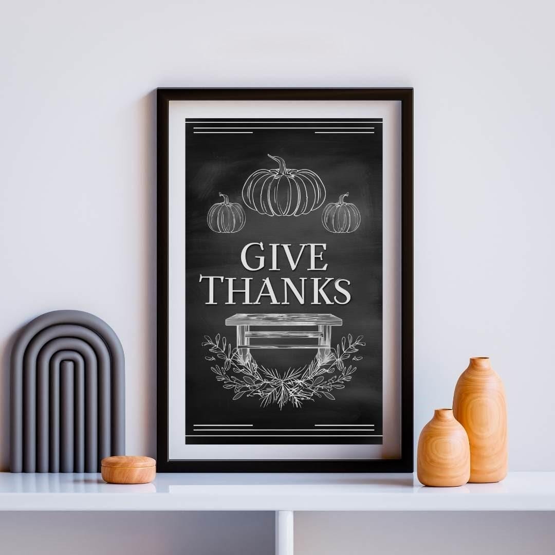 Farmhouse Wall Art | Rustic Thanksgiving Decor |Give Thanks Chalkboard Print