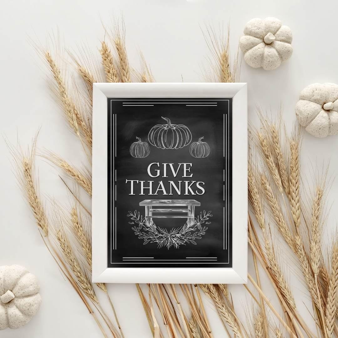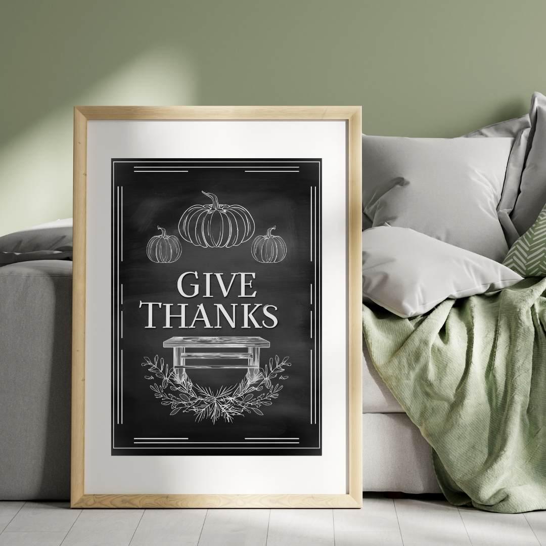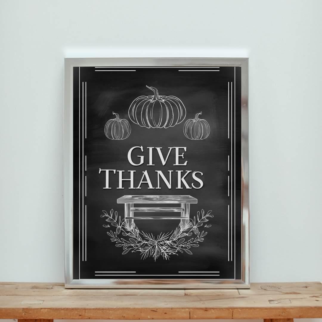 Farmhouse Wall Art | Rustic Thanksgiving Decor |Give Thanks Chalkboard Print
