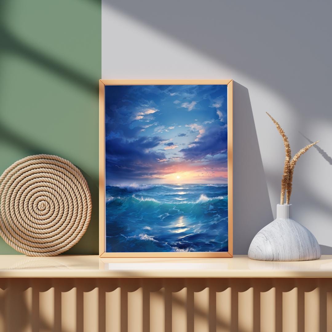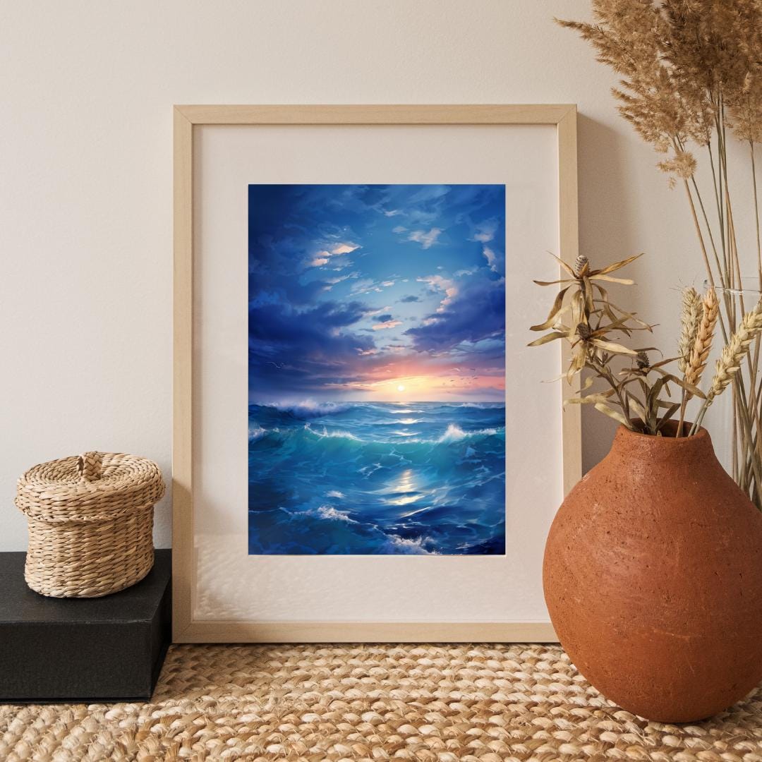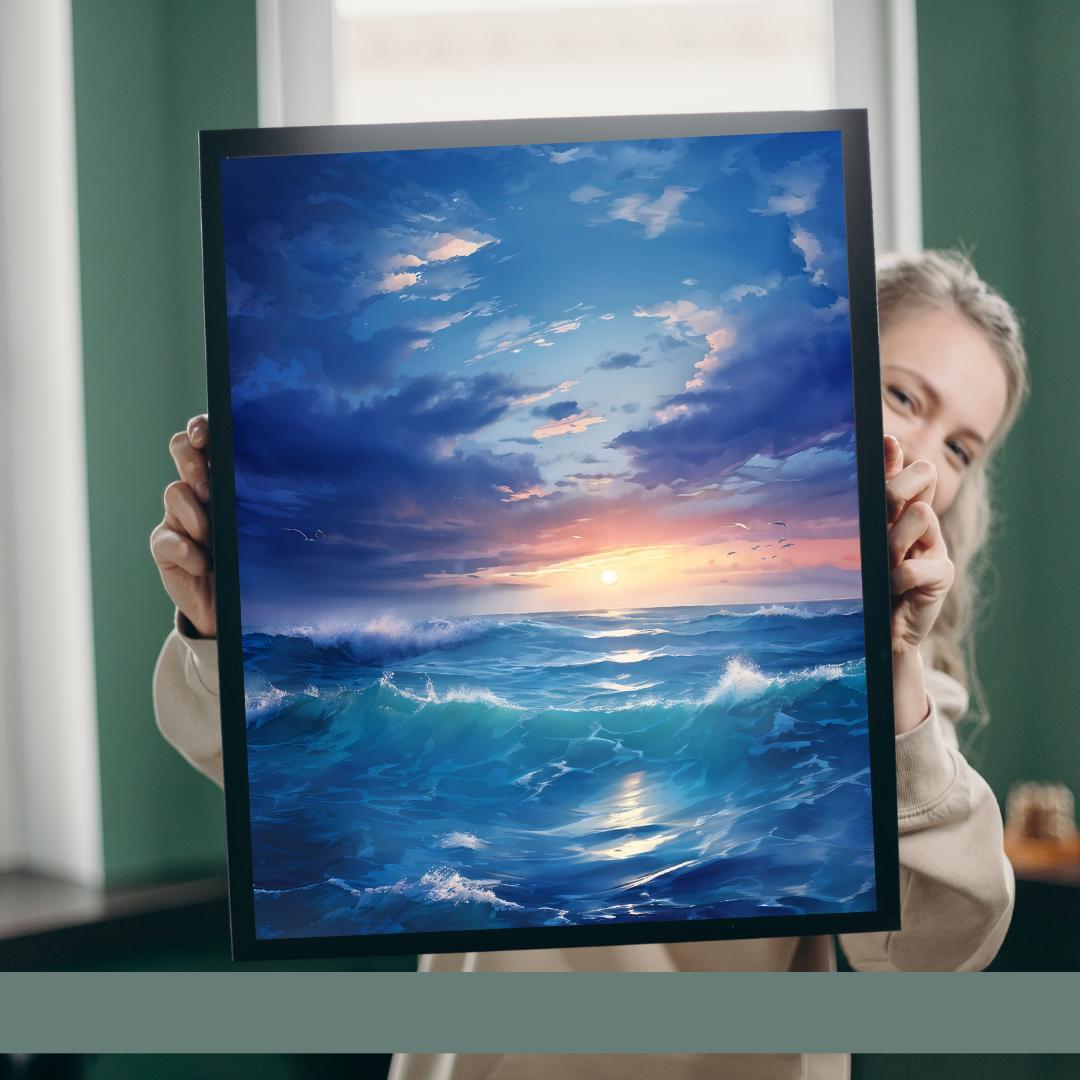 🌊Serene Ocean Waves Poster | Peaceful Seascape Wall Art | Tranquil Sunrise Ocean Print