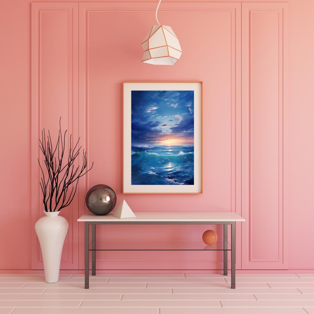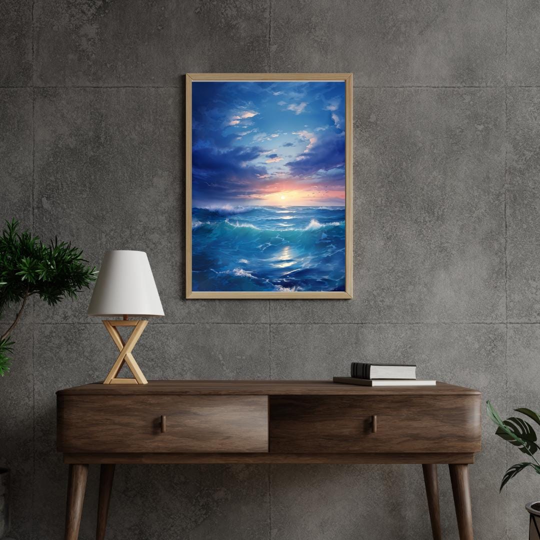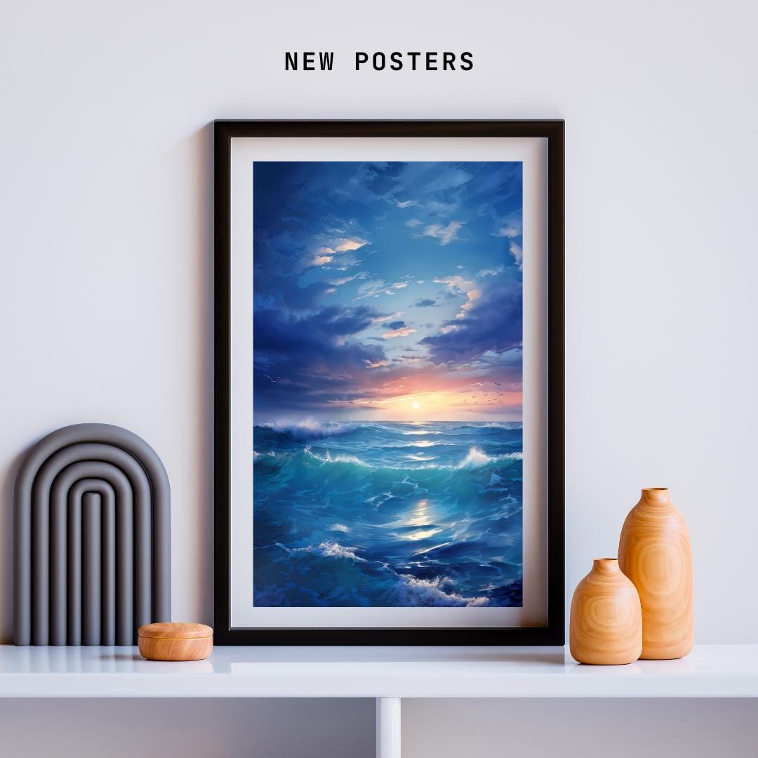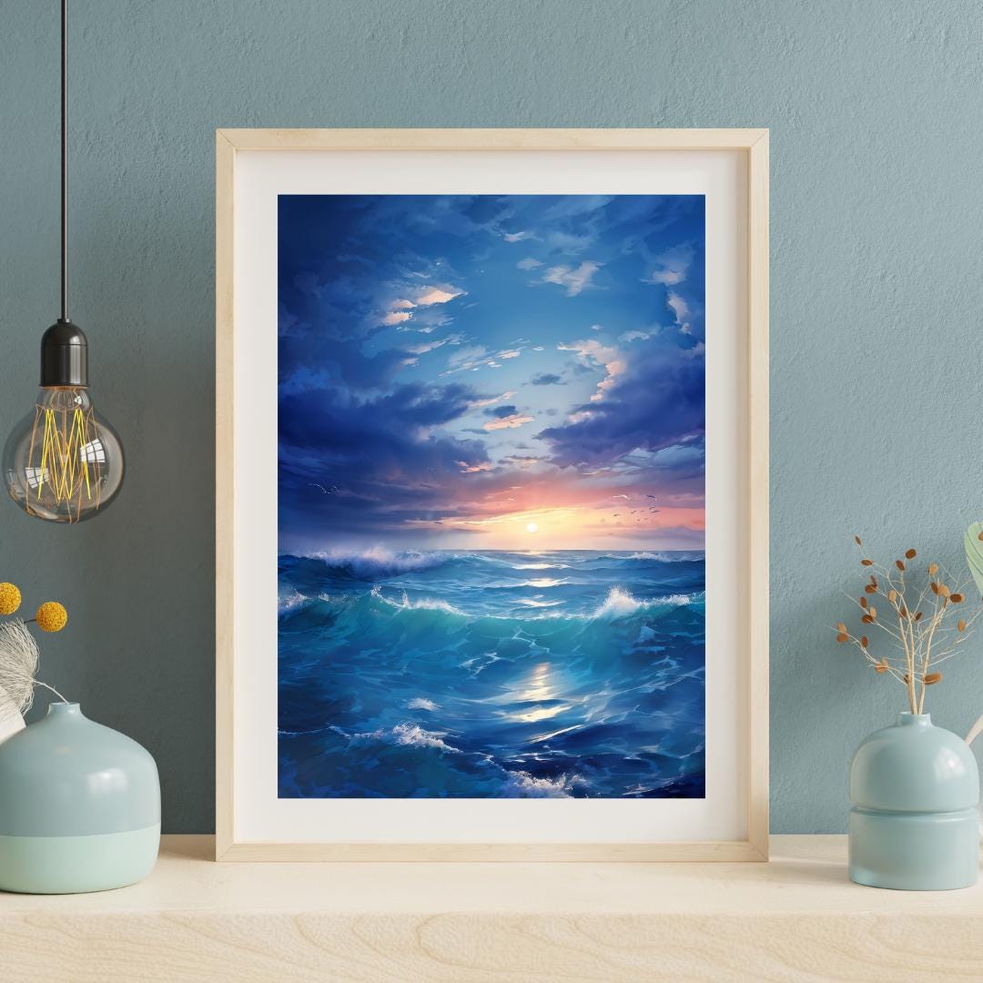 🌊Serene Ocean Waves Poster | Peaceful Seascape Wall Art | Tranquil Sunrise Ocean Print