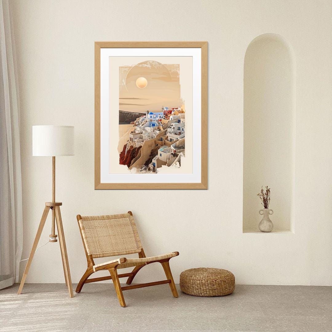 Santorini Sunset Art Print | Mediterranean Coastal Decor | Serene Greece Poster