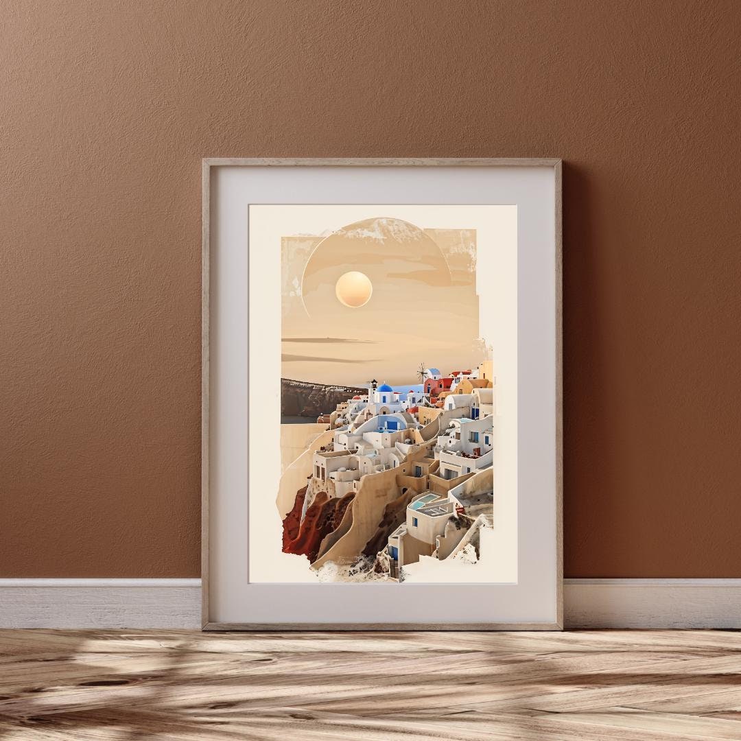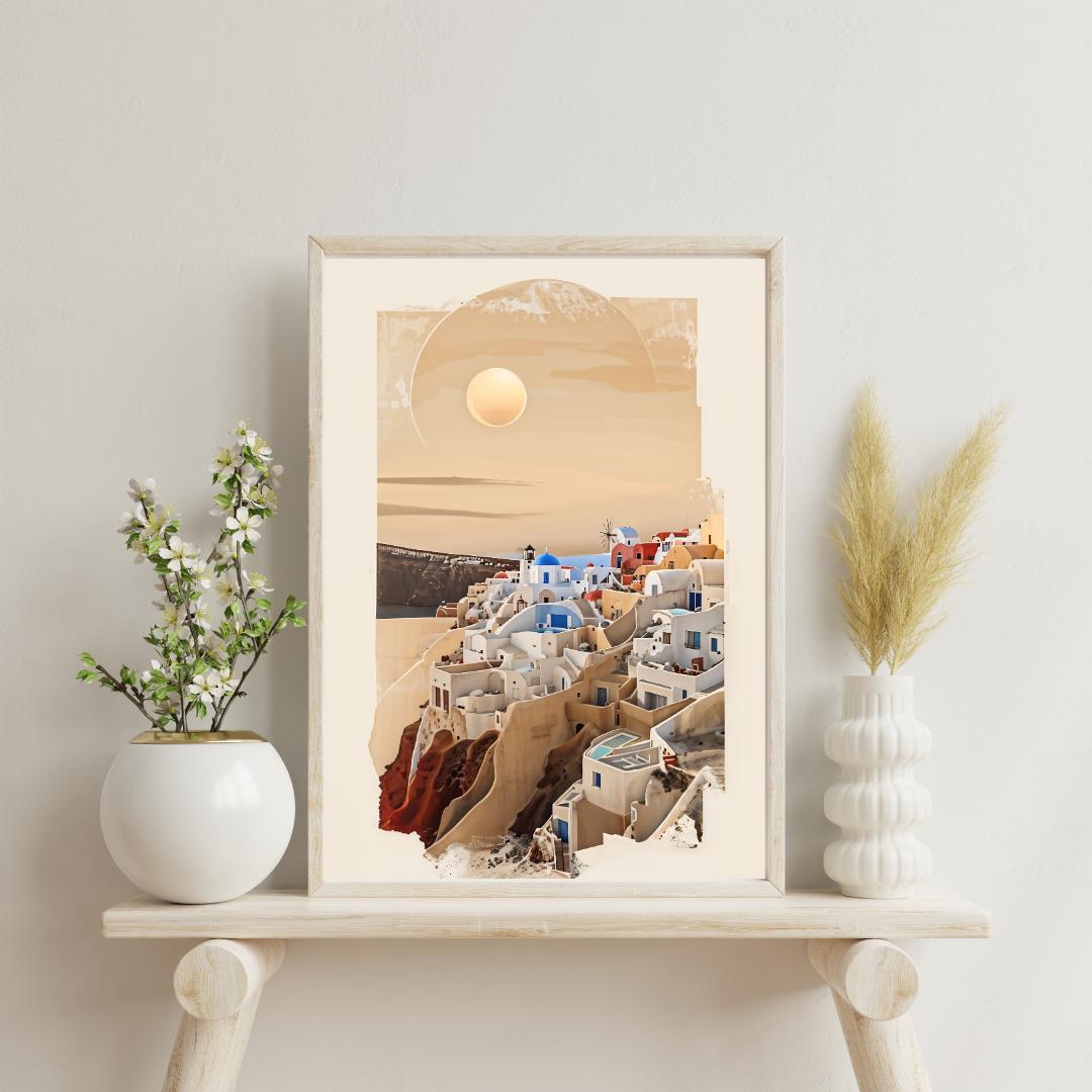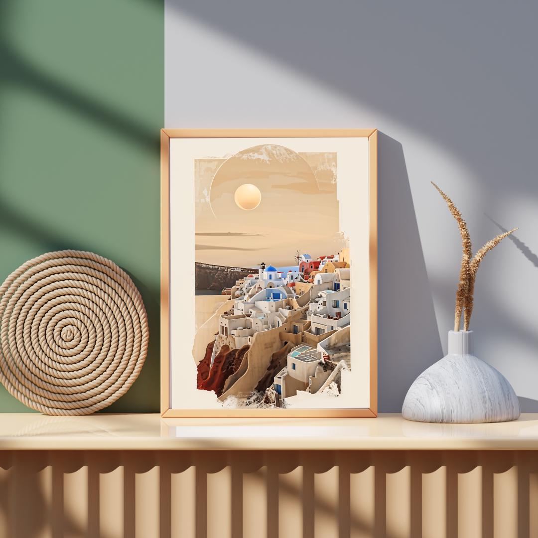 🏖️ Bring Santorini's charm into your home with this Sunset Art Print 🏖️