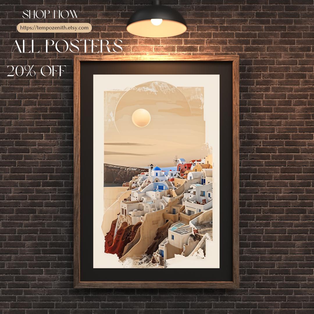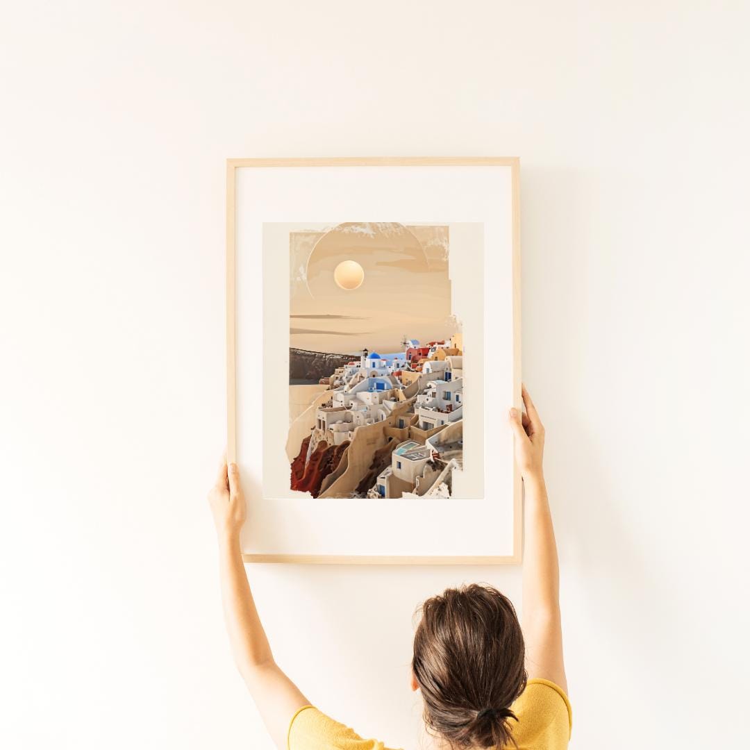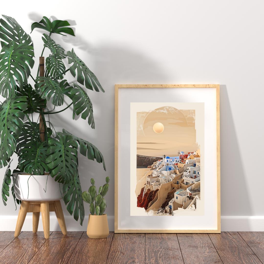 🏖️ Bring Santorini's charm into your home with this Sunset Art Print 🏖️
